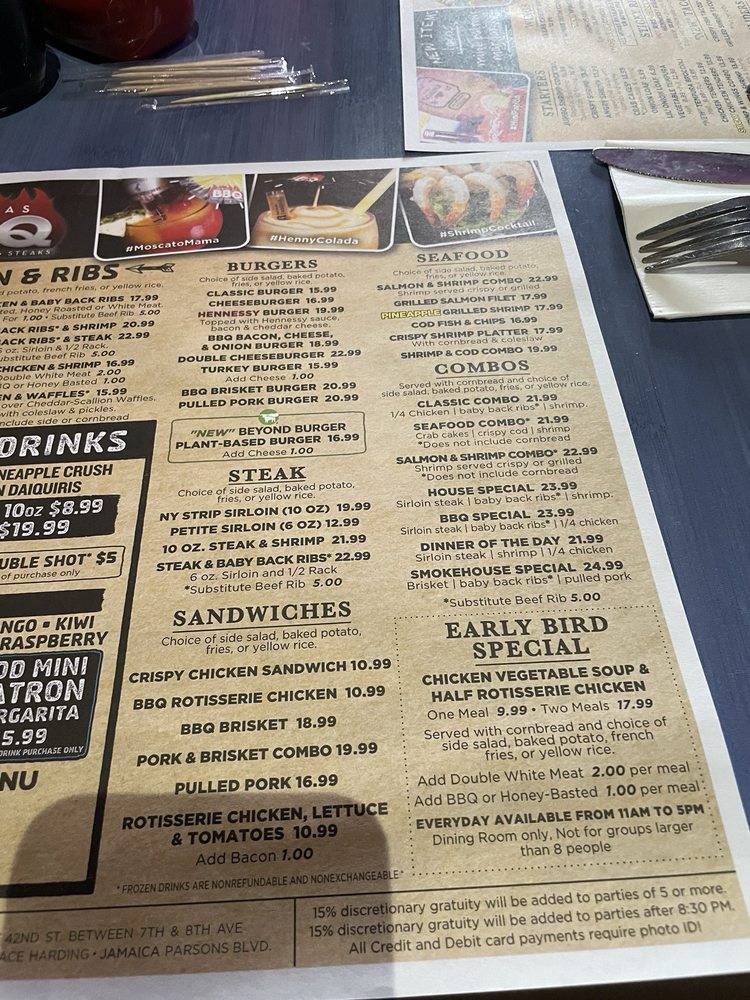 Dallas BBQ in Bronx, NY offers a diverse menu featuring salads, barbeque, seafood, and more. With amenities like delivery, takeout, reservations, and catering, this casual spot is perfect for lunch or dinner. Customers rave about the mouthwatering dishes, with favorites including sticky wings, half chicken dinners, and chicken and rib combos. The atmosphere is lively, with great music and plenty of seating. While some reviewers noted minor service issues, the overall experience was enjoyable. From tasty meals to family-friendly options, Dallas BBQ is a must-visit for those craving delicious BBQ in a welcoming setting.